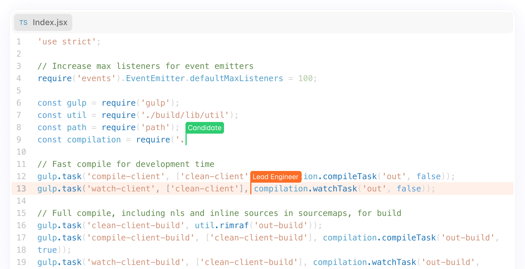 Highlight code sections and press a keyboard shortcut to rewrite code from natural language.