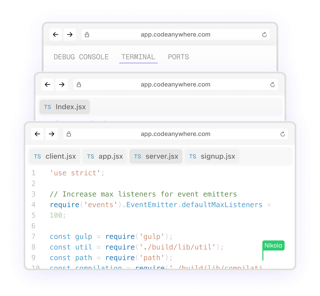 Codeanywhere is optimized specifically for writing code, allowing developers to move IDEs, terminals, and other windows across all of their monitors, and reduce configuration drift by ensuring all team members work from the same pre-configured image, unlike VDI which is restricted to a single terminal screen.